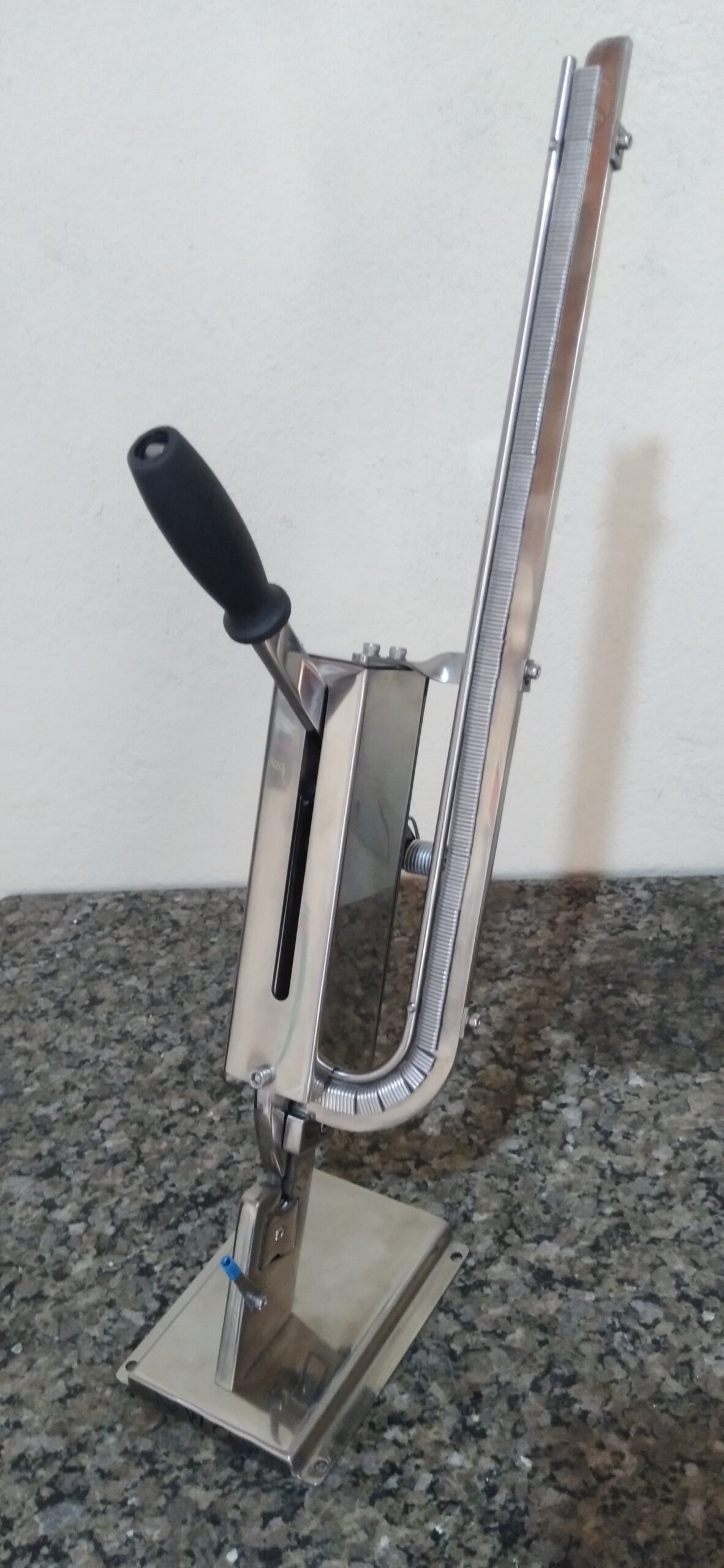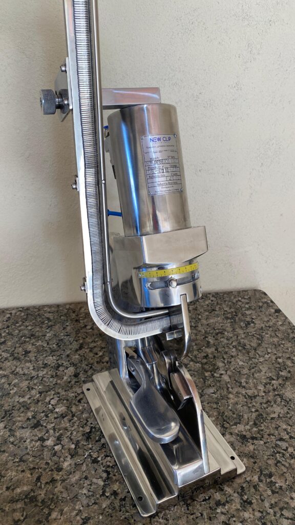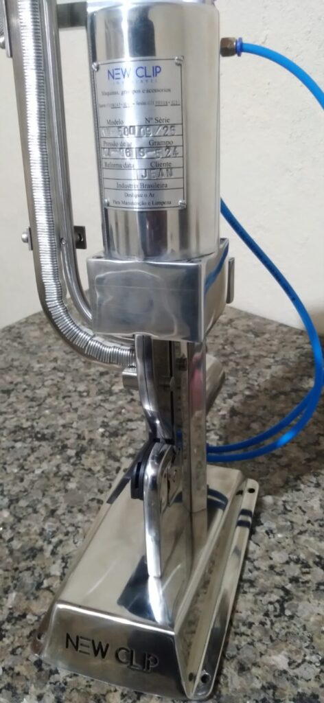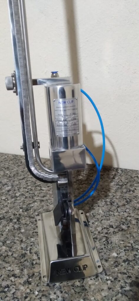 As grampeadeiras manuais são produzidas em aço inox dentro dos padrões exigidos pelo Ministério da Agricultura não utilizam ar comprimido e tem um mecanismo de acionamento simples através de uma alavanca. Ideal para pequenas produções. Fecha até 15 embalagens por minuto.